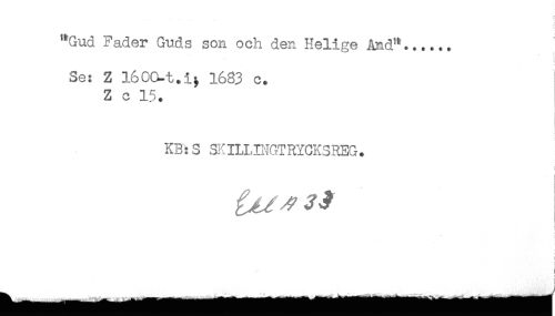 //// ..... r //// f //// t //// "Gud Fader Guds son och den Helige And"....,. //// ! //// Se: Z I60(^t.i; 1683 c. //// Z c 15. //// KB: S SKILLDJGTRYCKSREG. //// t //// t //// t //// ) //// ) //// i //// t //// < ////