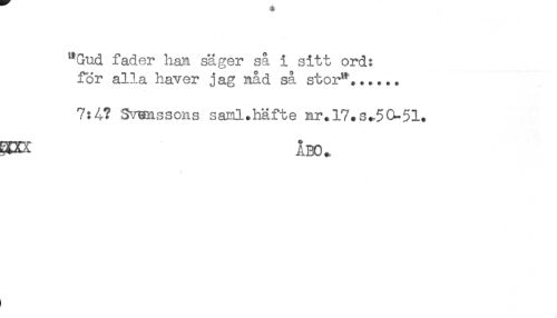 //// "Gud fader han säger så i sitt ord: //// för alla haver jag nåd så stor"...... //// 7:4? Svwissons saxil.häfte nr. 17.3*53-51. ////