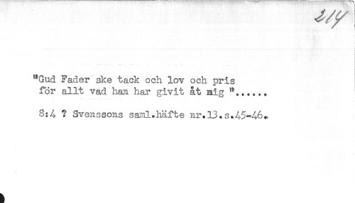 //// i //// -----.<< < .--- - . ' //// i //// "Gud Fader ske tack och lov och pris //// för allt vad han har givit åt mig //// 8:4 ? Svenssons sanil.häfte nr.13.s.45-46* ////