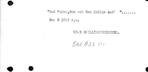 //// "Gud Fader,Son och Den Helige And' "....... //// Se: E 1819 r,u. //// KB:S SKILLINGTRYCKSREG. //// * //// . ////
