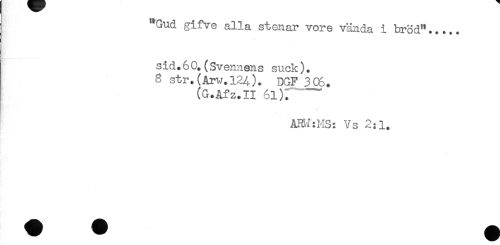 //// "Gud gifve alla stenar vore vända i bröd"..... //// sid.60. (Svennens suck). //// 8 str.(Arw.l24). DGF 3C6* //// (G.Afz.II 61). //// s * //// AKhMS: Vs 2:1. ////
