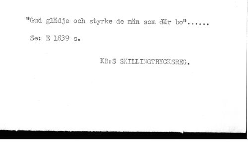 //// "Gud glädje och styrke de män som där bo"...... //// < //// Se: E 1839 s. //// r //// KB: S SKIII,INGTRYCKSRBG. ////