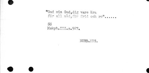 //// "Gud min Gud,dig vare ära //// för all nåd,för frid och ro'*...... //// - //// SÖ //// Mskpt.111.3.927. //// NORD.IIUS. //// < ////