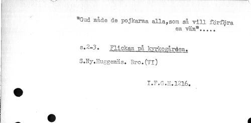 //// "Gud nåde de pojkarna alla,som så vill förföra //// en vän*..... //// ! //// S.Ny.Huggenäs. Bro.(Vl) //// I.F.G.H.1216. ////