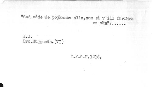 //// "Gud nåde de pojkarha allaysom så v ill förföra //// en väa"....... //// * //// s.l. //// Bro.Huggenäs. (VI) //// I.F.G.H.1216.. ////