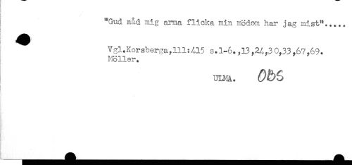 //// it //// "Gud nåd nig arma flicka min mödom har jag mist"... //// ^ Vgl.Korsberga,111:415 s.1-6. ,13,24,30,33,67,69. //// Möller. //// ULHA. //// t //// ! //// ! ////