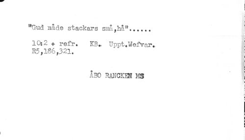 //// "Gud nåde stackars //// L //// 10:2 + refr. KB^ Uppt.Wefvar*. § //// R5,186,321. //// F //// ÅBO R^JCKEH MS i //// < //// E //// ! //// S //// i //// c ////