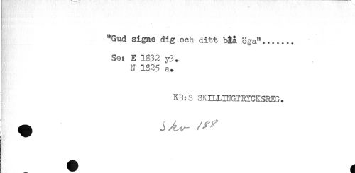 //// "Gud signe dig och ditt båa öga"....... //// Se: E 1832 y3. //// N 1825 a., //// ' //// KB:S SKILI-INGTRYCKSREG. ////