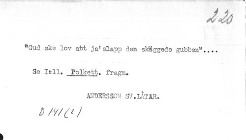 //// "Gud ske lov att ja'slapp den sMiggede gubben"____ //// { //// Se Itll. Polkett. fragm. //// ANDERSSON SV.LÅT AR. ////