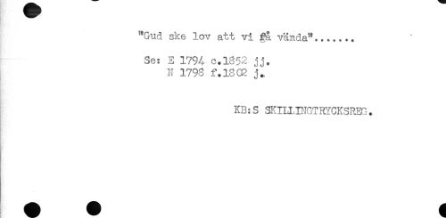 //// "Gud ske lov att vi ga vända"....... //// Se: E 17% c. 1852 jj. //// N 1793 f.1802 j. //// * //// KB:S SKILLINGTRYCKSREG,. ////