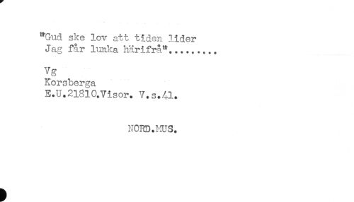 //// "Gud ske lov att tiden lider //// Jag får lunka härifrå"......... //// Vg //// Korsberga //// E.U.2l8lO.Visor. V.s.41. //// NORD.MUS. ////