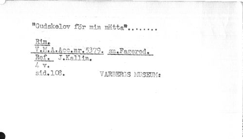 //// "Gudskelov för min mätta"........ ^ //// Rim., //// J;*A.Acc.nr.5379. sn.Fa?ered. //// Ref. J.Eallin. //// 4 v. //// sid.ice. VAR8ER1S HUSECi:? //// t //// .! //// : ////