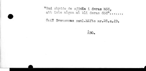 //// t*Gud skydde de sjöman i deras nöd, //// ^ att inte någon må bli deras död**....... //// 8:4? Svenssons saml.häfte nr.28.s.49. //// o //// ABO. //// } ////