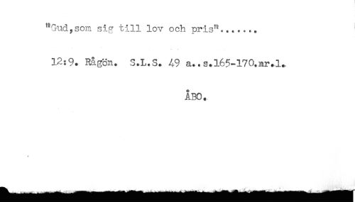 //// "Gud,som sig till lov och pris"....... //// 12:9. Rågön. S.L.S. A9 a..s.l65-170.nr.l., //// ÅBO. //// * ////