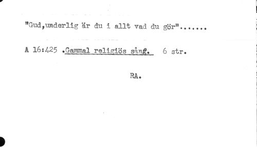 //// "Gud,underlig är du i allt vad du gör"..............! //// i //// ' *'- -** - - — . < //// A 16:425 .Gajmnal religiös sån^. 6 str. i //// RA. ! //// - //// j //// ! //// t ////