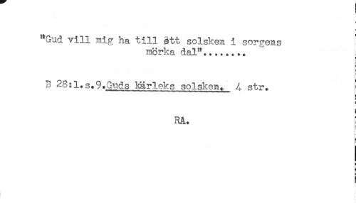 //// "Gud vill mig ha till ätt solsken i sorgens //// mörka dal"........ //// t //// - //// B 28:l.s.9.Guds kärleks solsken. 4 str. [ //// ! //// 5 //// B //// H //// RA. //// B //// s //// 5 //// r- ////