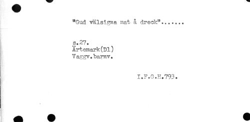 //// "Gud välsigna mat å dreek"....... //// s.27. //// Ärtemark (Dl) //// Vaggv.bamv. //// I.F.G.H.793. ////
