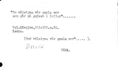 //// ! //// s //// - - - - ..... * - . -- ... -- : //// r //// "Gu välsigna vår gay!ila mor //// som går på golvet å lullar"....... //// i //// -- . ... r //// 3 //// Vgl.Iäng jum, 111:23 5. s. 84. //// Lampa. //// ! //// t //// (Gud välsigna vår gamla mor"..... ). //// t //// UU^A. ////