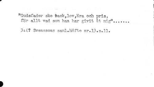 //// - ... —--*— //// "Gudsfader ske tack,lov,ära och pris^ //// för allt vad som han har givit åt mig".,.,... //// 3:4? -Svenssons saml.häfte nr. 13.s. 11. //// c //// i ////
