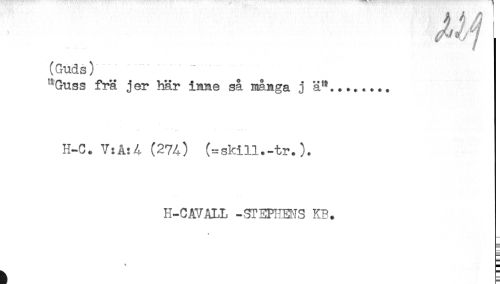//// (Guds) //// "Guss frä j er här inne så många j ä"........ //// H-C. V: A: A (274) (=skill.-tr.). //// H-CAVALL -,?TEPIims KB. //// h ////