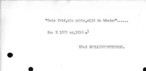 //// . - //// "Guds frid,min gubbe,nöjd du tänder"...... //// Se: E 1825 cc,l830 a^ //// KB:S SKILI.TNGTRYCKSREG. //// } . ////