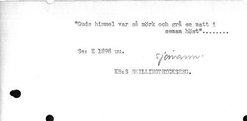//// "Guds himmel var så mörk och grå en natt i //// senan höst"........ //// Se: E 1398 uu. ^ , - //// KB:S SKILLINGTRYCKSREG. ////