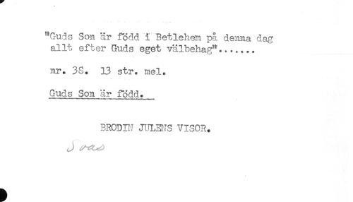 //// "Guds Son är född i Betlehem på denna dag //// allt efter Guds eget välbehag"....... //// nr. 38. 13 str. mel. //// Guds Son är född. //// BRODIN JULENS VISOR. //// t ////