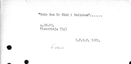 //// "Guds Son är född i Betlehenf....... //// / //// s. 28-3 0. //// Finnerödja (Vg) //// [ I.F.G.H. 1021, ////