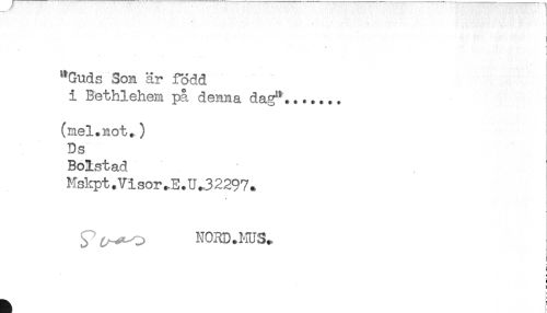//// "Guds Son är född //// i Bethlehem på denna dag"....... //// (mel.not.) //// Ds //// Bolstad //// Mskpt.Visor.E.U.32297. //// NORD.MUS., //// r //// s //// f ////