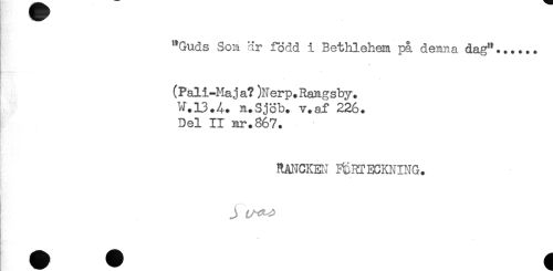 //// (Pali-Maja? )Nerp.RaJigsby. //// W.13.A. n.Sjöb. v.af 226. //// Del II nr.867. //// RANCKE*: FÖRTECKNING. ////