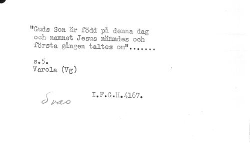 //// "Guds Son är född på denna dag //// och namnet Jesus nämndes och //// första gången taltes om"....... //// s.5. //// Varola (Vg) //// I.F.G.H.4167. ////