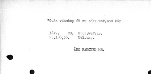 //// "Guds vänskap få nu söka merysom här*'*- //// 12:7. MU. Uppt.Wefvar. //// R5,186,56. Hel.axg. //// ÅBO RANCKEN MS. ////