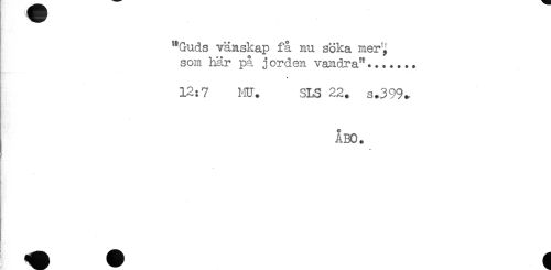 //// "Guds vänskap få nu söka mer, //// som här på j orden vandra**....... //// 12:7 MU. SLS 22. s.399. //// ÅBO. ////