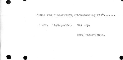 //// "Guld vid hinlarandenyaftonstänming rik"....... //// * //// 5 str. 11482,s.963. SVA kop. //// ULTA BLKTS SAI-iL. //// j ////