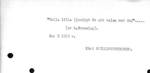 //// "Gulla lilla ljuvligt är att valsa med dej"..... //// (av G.Svenning). //// Se: E 1910 v. //// KB:S SKILLINGTRYCKSRm. ////