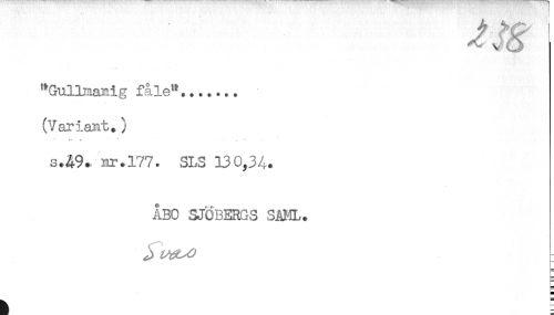 //// , . - . //// "Gullmanig fåle"....... //// (Variant.) //// . ^ .... . . ^ . //// s.49. or. 177. SLS 130,34. //// ÅBO SJÖBERGS SAML. ////