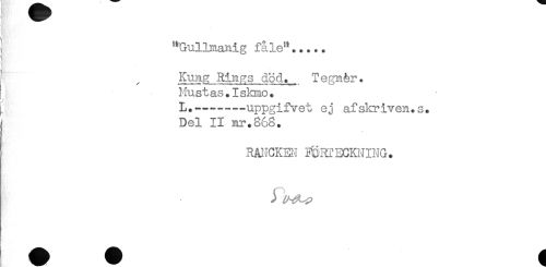 //// "Gullnanig fåle"..... //// Kung Rings dod.. Tegnér. //// ! Hustas.Iskmo. //// ^ L.----—uppgifvet ej afskriven.s. //// Del II nr.868. //// RÅIJGKEN mRTECKNING. ////