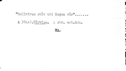 //// * //// = //// "Gullvivan står uti ängen vår".........- //// A 394:Vårvisa. 4 str. not.kom. 5 //// RA. : //// ! //// a //// T //// B //// H //// t //// B //// H ////