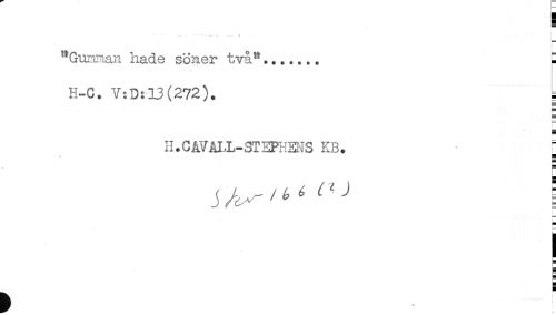 //// ...... ... .. ........ - .... ., . r //// "Gumman hade söner två^....... - //// t- t s //// '** '*. * //// H-C. V:0:13(272). n //// E //// — //// H.CAVAI-L-3TEPHHiS KB. //// H ////