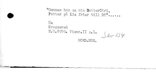 //// "Gumman hon sa min BotterCiri, //// ^ Petter på Lia friar till Di"...... //// Ha //// Krogsered //// E.U.8090. Visor.II s.l. //// NORD. MUS. ////