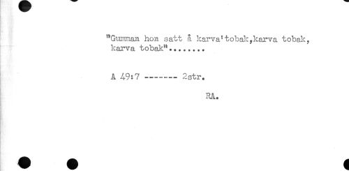 //// B}. //// "Gumman hon satt å karval tobalc,karva tobak, //// karva tobak^........ //// A 49:7-------2str. //// RA. ////