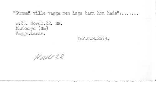 //// "GuimiaA ville vagga nen inga barn hon hade^........ //// s.25. Nordl.22. 3E* //// Harkaj-yd (3m) //// Vaggv.barnv. //// I:F.G.H.223% ////