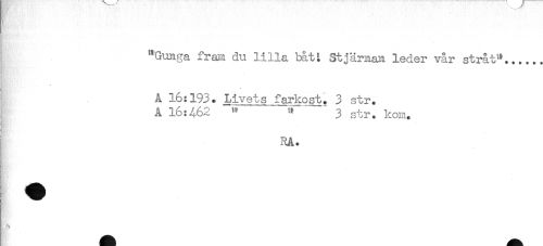 //// "Gunga fram du lilla båtL Stjärna leder vår stråt".. //// . //// nC'**'* ' //// Å 16:193. Livets......farkost. 3 str. //// Å 16:462 '' tr' ' 3 str. kom. //// RA. ////