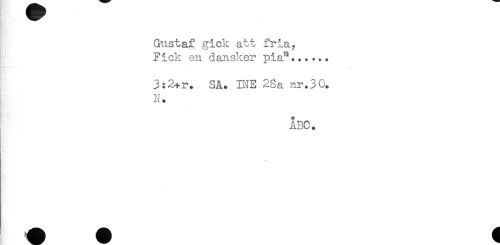 //// Gustaf gick att fria, //// Fick en dansker pia"...... //// - //// 3:2+y. SÅ. INE 28a nr.30. //// N. //// ABC. ////