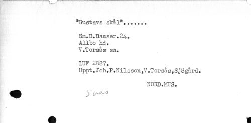 //// "Gustavs skål"....... //// Sm.D.DaRser.2A* //// ållbo hd. //// V.Torsås sn. //// * //// LUF 2887. //// Uppt.Joh.P.Nilsson^V.TorsåsySjögård. //// NORD.MUS. ////