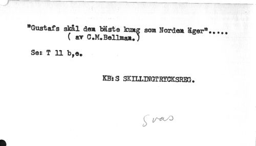//// "Gustafs skal den bäste kung som Norden äger*..... //// ( avC.M.Bellman.) //// Se: T U b,e. //// KB: S SKILLINGTRYCKSRBG. ////