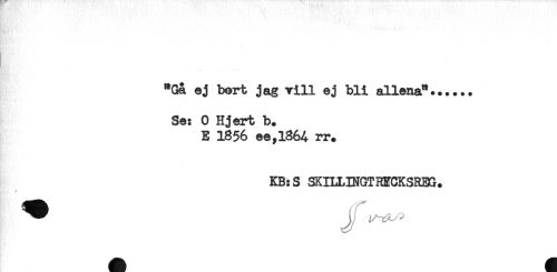 //// *Gå ej bert jag vill ej bli allena*...... //// Se: O Hjert b. //// E 1856 ee,l864 rr. //// KB:S SKILLINGTHECKSREG. ////