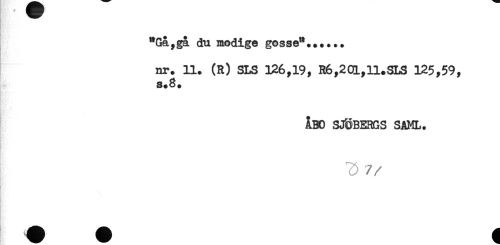 //// "Ga,ga du modige gosse"...... //// nr. 11. (R) SLS ^6,19, R6,2d,ll.SLS 125,59, //// s.8. //// ÅBO SJUBERGS SAML. //// 7/ ////