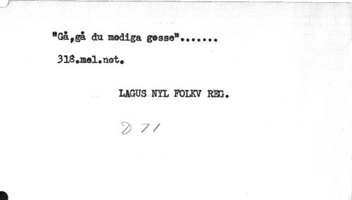 //// "Ga,gå du modiga gosse"....... //// * //// 318 .mal. not. //// LAGUS NYL FOLKV RB3. //// ^ // ////