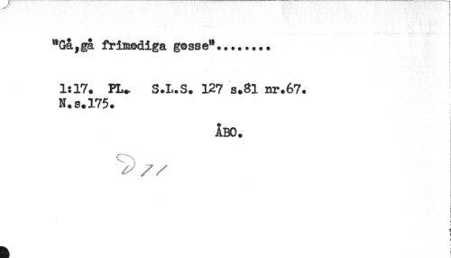 //// - //// "Gå,gå frimodiga gosse"........ //// ) //// 1:17. PL. S.L.S. 127 s.8l ar.67. //// N.s.175. //// ÅBO. //// f //// - //// [ //// * //// - //// i //// : ////